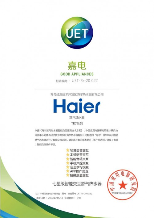 7月中旬,中國家用電器研究與評(píng)測(cè)中心將海爾熱水器TR7系列評(píng)定為7星級(jí)智能交互燃?xì)鉄崴。作為海爾智家成套智慧解決方案里的重要一環(huán),TR7系列同時(shí)滿足了觸摸屏顯交互、APP操作交互、自主學(xué)習(xí)交互、手機(jī)聲控交互、智能音箱交互、本機(jī)語音交互、場(chǎng)景語音交互這7個(gè)交互標(biāo)準(zhǔn),達(dá)到了智能交互的最高等級(jí),為用戶帶來智慧、舒適的用水體驗(yàn)。看完發(fā)現(xiàn),原來智慧可以這么高級(jí)!