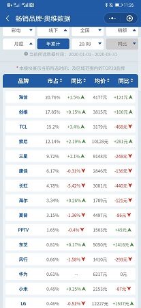 華為電視于去年8月正式發(fā)布。其OLED電視的顯示屏為LG的面板。不到一年,其彩電銷售在線下排行已位居第13名,市場份額為0.61%。不僅超過LG電視的銷量,還超越了小米電視。(來自奧維云網(wǎng)數(shù)據(jù))