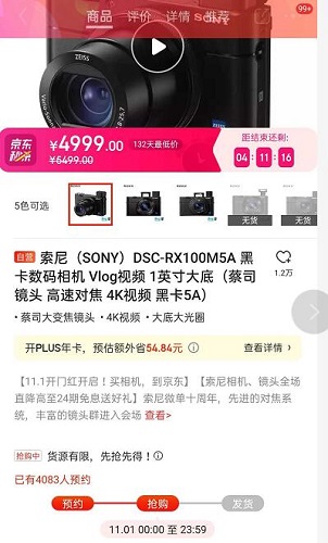 “在10月底,索尼6100套機的價格在京東上突然沒有了,變成了待發布,然后搞起了預約。”張女士說,截止到10月31日,她看到京東網上預約該款相機的人數已經超過4000人。但1號公布了4999元價格后,昨天還沒有賣出100臺。“索尼這分明是搞虛假促銷,忽悠消費者。”