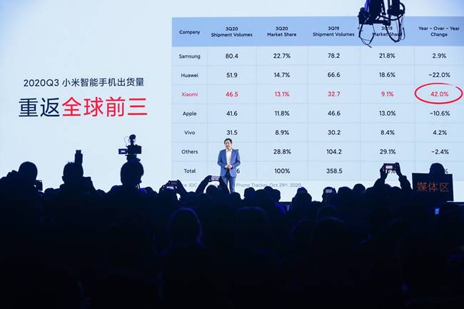 家電消費(fèi)網(wǎng)11月5日訊 上周,根據(jù)全球三大知名調(diào)研機(jī)構(gòu)的數(shù)據(jù),小米在全球智能手機(jī)市場(chǎng)的份額位居全球第三。今天,小米集團(tuán)創(chuàng)始人、董事長(zhǎng)兼CEO雷軍表示,在MIDC 2020小米開(kāi)發(fā)者大會(huì)上表示,其實(shí)早在2014年,小米就達(dá)成了這一成就,只是我們又花了足足6年時(shí)間來(lái)完成一個(gè)輪回。“這一切,離不開(kāi)我們堅(jiān)持技術(shù)為本,將繼續(xù)加強(qiáng)研發(fā)投入,并把人才作為了小米發(fā)展的根本大計(jì)。”
