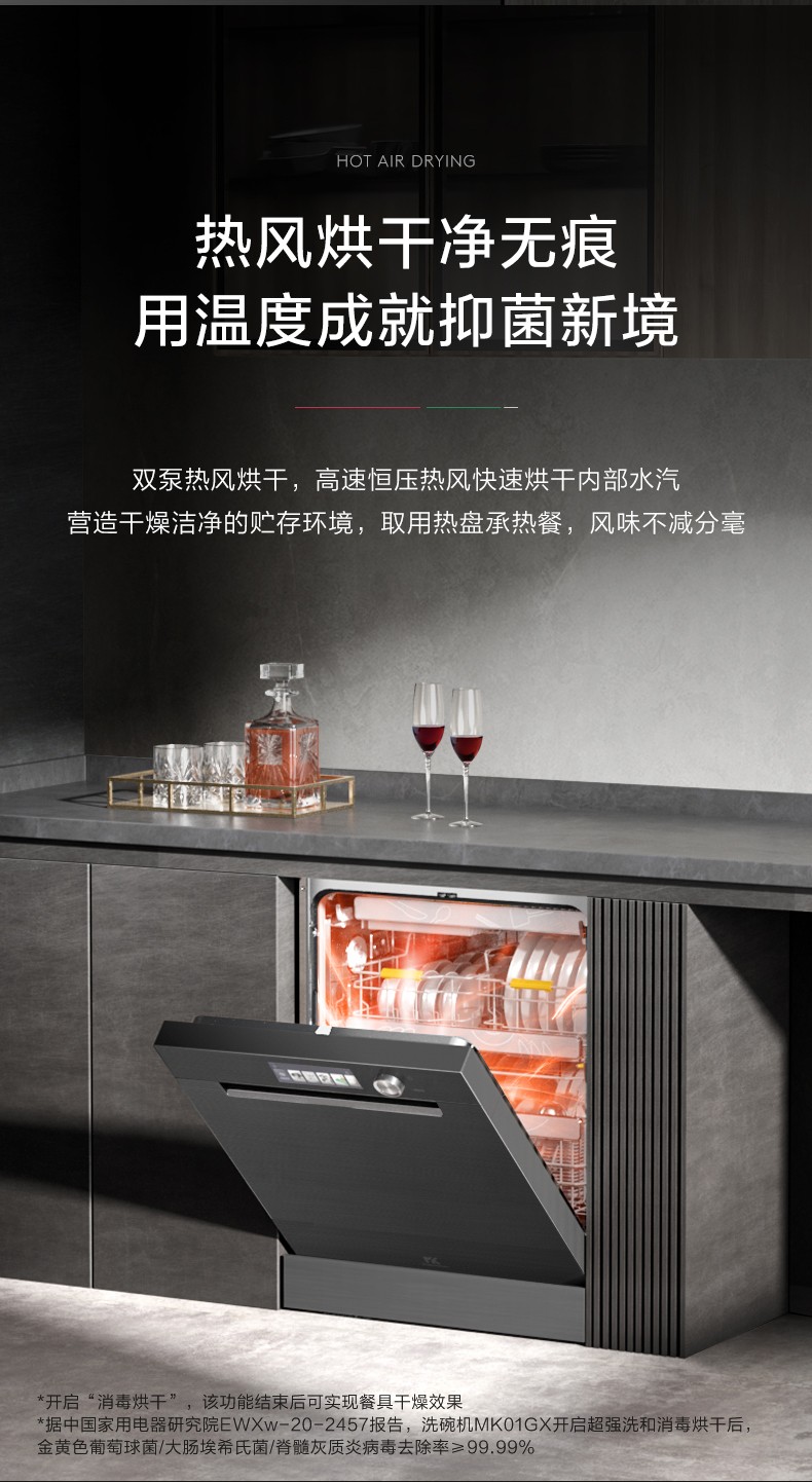 M9洗碗機(jī)的多時(shí)序洗滌,讓你在一頓美味過后,無需為餐具清潔而煩憂;中西分區(qū)精細(xì)化洗滌,無論是意式紅燴還是海鮮濃湯,再多油污都能輕松高效凈洗。而香檳珍器相佐,自然也值得被精心呵護(hù)。MK設(shè)計(jì)師深知每一件珍器之于聚會(huì)的重要性與價(jià)值,M9洗碗機(jī)通過搓揉噴管,模擬手洗揉搓動(dòng)作護(hù)理級(jí)柔洗,極凈呵護(hù)柔洗骨瓷、水晶等名貴餐具,重現(xiàn)動(dòng)人心弦的瑩潤光澤,讓你更舒心縱享派對(duì)妙趣。