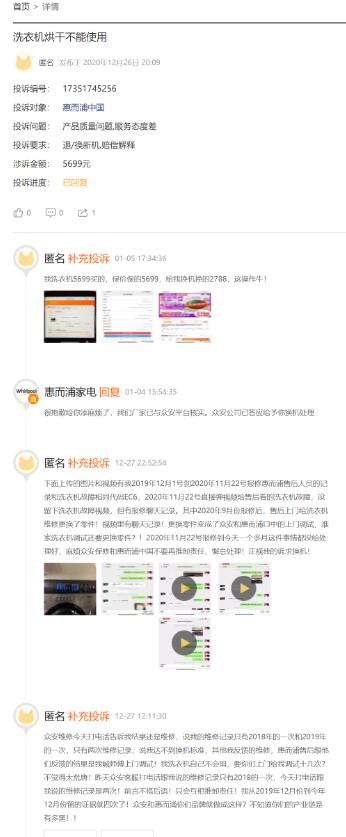 家電消費網1月14日訊    2021年新年來到,可消費者劉先生(化名)沒有迎來新年的歡樂,而是繼續投訴惠而浦中國。