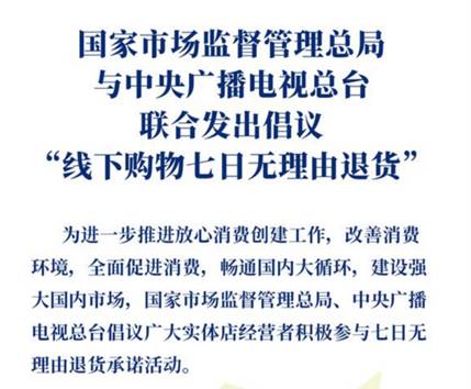 家電消費網3月17日訊 前天,國家市場監督管理總局與中國廣播電視總臺聯合發出的倡議,倡議廣大實體店經營者自愿參與“七日線下購物無理由退貨承諾”活動。昨天,國美電器率先宣布加入此次活動,不僅為消費者營造更安全放心的消費環境,而且為提振消費信心、拉動內需消費起到積極作用。