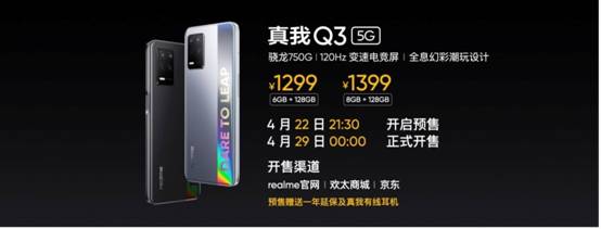 真我Q3配備了一塊6.5英寸1080P單挖孔顯示屏,支持120Hz屏幕刷新率和180Hz操控采樣率;機身后蓋采用了全息幻彩拼接工藝,共推出了迷幻銀、科幻黑兩種配色,同樣內置了5000毫安時電池,充電速度升級到了30W;后置相機依舊是4800萬像素三攝鏡頭,搭載的處理器換成了高通驍龍750G,預裝realme UI2.0版本,其中6+128GB 售價1299元、8+128GB 售價1399元。