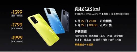 真我Q3 Pro配備了一塊6.4英寸三星AMOLED材質單挖孔屏,支持120Hz屏幕刷新率和360Hz觸控采樣率,機身背面共推出了引力黑、電光藍、螢火蟲三種配色;搭載聯發科天璣1100處理器,后置6400萬像素三攝鏡頭,內置4500毫安時電池容量,支持30W快充技術,預裝realme UI2.0版本系統。其中,6+128GB 售價1599元、8+128GB 售價1799元、8+256GB 售價1999元。(溫麗雅)