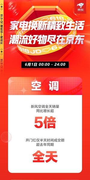 京東618首日空調(diào)銷售:新風(fēng)空調(diào)全天銷量同比增5倍