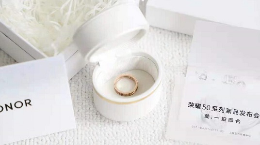 家電消費網6月13日訊 在官宣流量明星龔俊是代言人后,昨天,榮耀向媒體派送了榮耀50系列邀請函——代言人龔俊的同款戒指。