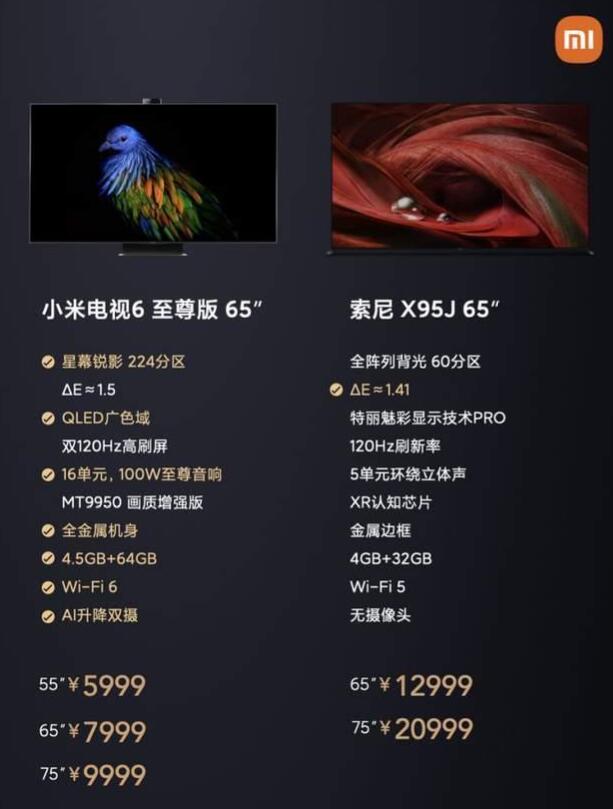 導讀:  家電消費網6月28日訊 今天下午,小米電視6系列正式發布。小米電視總經理潘俊在發布會上曬出多組數據,直接將小米電視6至尊版對標索尼旗艦電視,挑戰萬元畫質天花板。