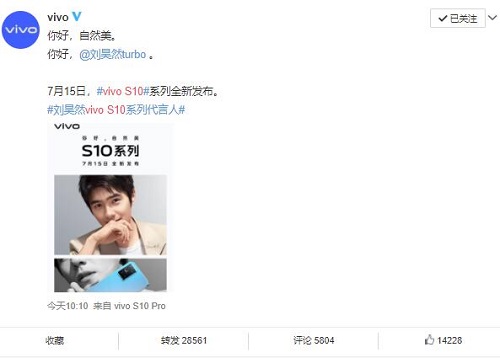 vivo S10新手機將于7月15日發(fā)布 上萬網(wǎng)友點贊代言人劉昊然