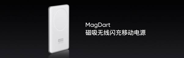 為了帶給用戶更加自由方便的全方位無線充電體驗,realme還傾力打造了MagDart磁吸無線閃充移動電源。外觀采用了高品質、充滿高級感的白色素皮和鋁合金材質,整體小巧、輕薄,將它吸附在手機上,就可以自動快速充電,非常方便。