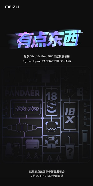 據(jù)了解,在9月22日舉辦的“魅族有點(diǎn)東西秋季新品發(fā)布會(huì)”上,屆時(shí)將發(fā)布魅族 18s、18s Pro、18X 三款旗艦智能手機(jī),還有Flyme、Lipro、PANDAER等30+ 款新品。