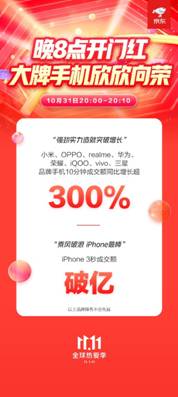 京東11.11今晚8點啟動:小米OPPO華為同比增超300%
