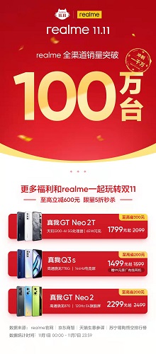 realme七天全渠道銷量超100萬臺 雙十一劍指一千萬臺