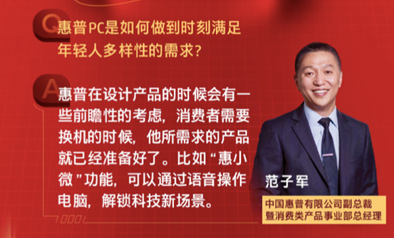 對此,中國惠普有限公司副總裁暨消費類產品事業部總經理范子軍表示:“惠普在設計產品的時候會有一些前瞻性的考慮,消費者需要換機的時候,他所需求的產品已經準備好了。比如‘惠小微’功能,可以通過語音操作電腦,解鎖科技新場景。”