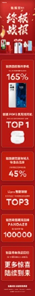 導讀:  家電消費網11月12日訊 今天,魅族科技發布了今年雙十一戰報:魅族依然被年輕人鐘愛,旗艦系列手機銷量同比增長 165%,與京東聯合定制的魅族 POP3 斬獲該排行榜 TOP1。  魅族戰報還顯示,首次參加雙