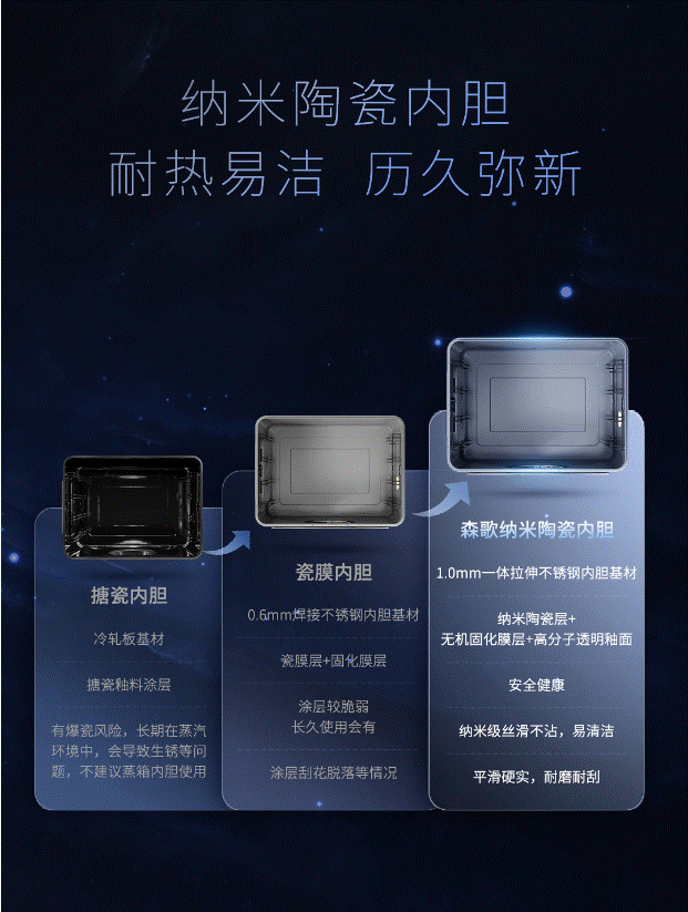 采用1.0mm一體拉伸304不銹鋼基材+納米陶瓷層