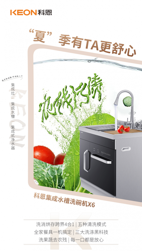 阻止我廚藝增長的主要原因,大概是夏季炎熱的廚房和四季不想洗碗的手,如今“夏”廚有了科恩S400蒸烤一體集成灶,再加上科恩集成水槽洗碗機X6的坐鎮,連廚房都變得有趣了起來!跨界4合1洗消烘存,把刀架、900mm寬體多功能超大水槽、洗碗機、儲物柜等集成一體,空間更優化,5大清洗模式、多種洗滌場景一機搞定,雙層靈活碗籃輕松滿足五口之家十套餐具清洗存儲,湯鍋、炒鍋等大件廚具也能輕松洗滌;更有特制潔凈果蔬洗功能,可清洗葡萄、青菜等果蔬,高效去農殘,還可清洗生蠔、螃蟹等復雜海鮮!如此配置的廚房,不僅給生活增添了無限情趣,就算來再多客人都不帶怕的!