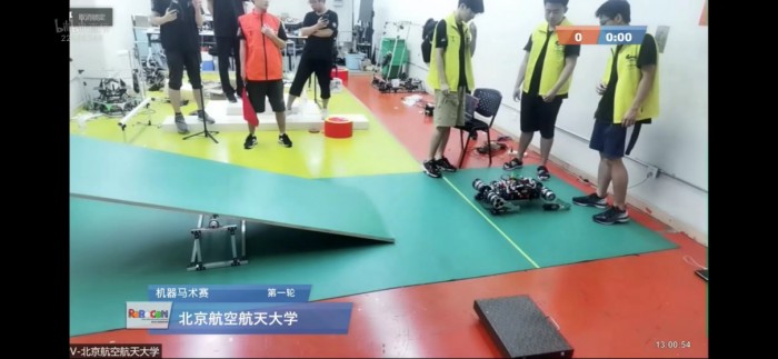 7月22日——機器馬術賽:華中科技大學、北京航空航天大學、四川大學等48支高校隊伍參賽。今年的馬術比賽采用線上方式進行,只設置障礙賽,取消競速賽。每支隊伍的機器馬在3分鐘內跨越蹺蹺板、階梯、雙木橋、高欄4個關卡,展示機器馬向前行進、爬坡、彈跳等動作,檢驗賽隊對于機器馬重心及摩擦力、關節自由度等設計水平。