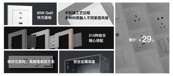 今天,lipro 還帶來了首次采用模塊化設計的 lipro 開關面板,它能夠提供多達 210 種的模塊化定制選項,在外觀上通過金屬、玻璃材質的突破性融入,能夠與多種風格家居環境的完美搭配;同時,lipro 還提供二聯、三聯、四聯、五聯組合開關,以及業內首款 65W 內嵌式 USB 快充模塊,極大地節約了插頭占用空間,讓桌面更整潔、簡約。