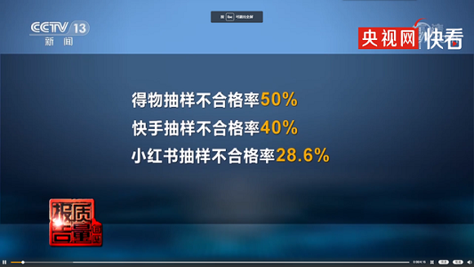央視曝光電商直播商品質量:得物50%不合格快手40%不合格小紅書28.6%不合格