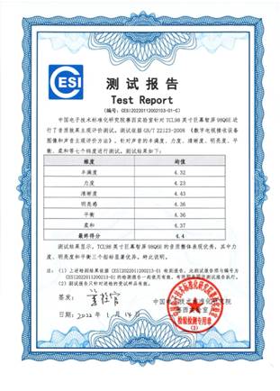 中國電子標(biāo)準(zhǔn)院還請來18位音質(zhì)領(lǐng)域?qū)<?mdash;金耳朵、音樂人及科技達(dá)人,為超大屏家庭影院電視打分。測試依據(jù)符合國家主觀評價標(biāo)準(zhǔn)的試聽測試體系,針對聲音的豐滿度、力度、清晰度、明亮度、平衡、柔和等七個緯度進(jìn)行了測試。TCL98英寸巨幕智屏 X 安橋音響最后獲得4.4分(4分以上即為優(yōu)秀水平)。