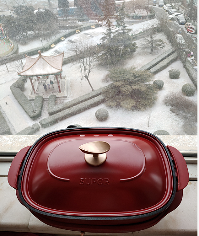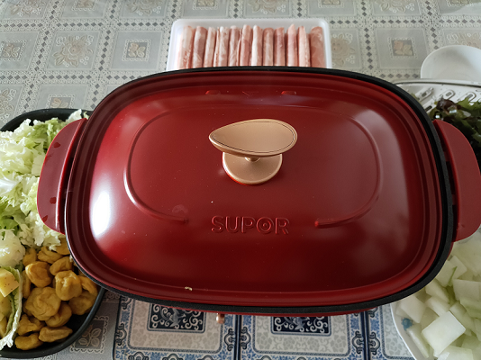 蘇泊爾多功能煎烤機JD3322D820H4外觀是橢圓形的造型,加上中國紅色的噴涂工藝,不僅時尚美觀,十分有品質,還很喜慶,提升了廚房顏值。頓時秒殺傳統電磁爐加金屬鍋組合的火鍋組合。