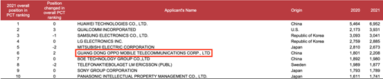 2021年全球PCT國(guó)際專利申請(qǐng)量排行版公布:OPPO第三年躋身前十