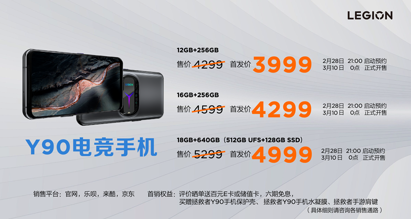 拯救者Y90電競(jìng)手機(jī)12GB+256GB版本首發(fā)價(jià)3999元,16GB+256GB版本首發(fā)價(jià)4299元,18GB+640GB版本首發(fā)價(jià)4999元。(溫麗雅)