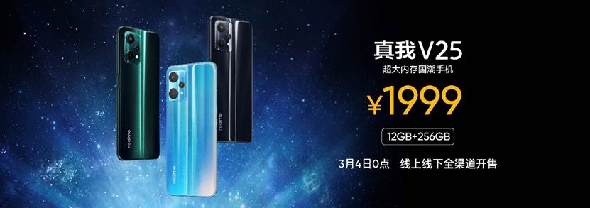 家電消費網3月3日訊     今天,我國新銳智能手機品牌realme在主題為“手握星河”的發布會上,正式發布攜手“紫禁城”IP的realme真我V25國潮手機:標配“12 GB+256GB”超大內存組合,售價1999元。