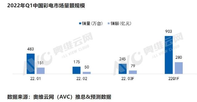 導讀:  家電消費網4月5日訊 昨天,大數據公司奧維云網發布的數據顯示,2022年第一季度中國彩電市場零售量規模為903萬臺,同比下降8 8%;零售額規模為280億元,同比下降10 1%。  對此,奧維云網分析稱,今年一季度