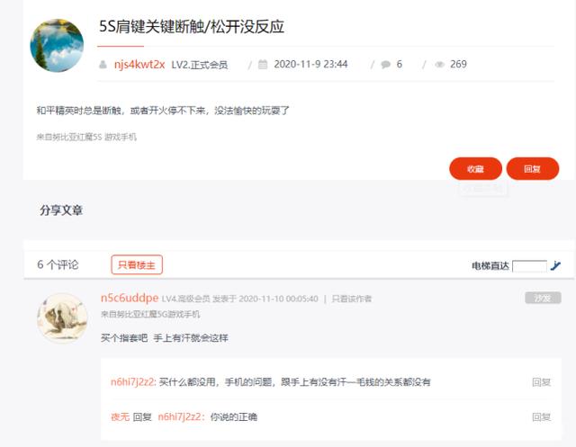 此外,一些專業游戲手機在游戲體驗方面也并未給專業玩家帶來更加的操作觸控體驗。如紅魔5S上觸感按鍵就遭到用戶的吐槽,主要原因是在手機發燙導致手指出汗以后,觸感按鍵的按壓精準度直線下降。去年不少玩家又吐槽投訴紅魔6,稱其最致命的缺陷是在橫屏時耳機接口設計在下方。一般打游戲的人都會用手掌頂著左下角握持,可因為紅魔6耳機接口的遮擋,握持起來很不方便,玩王者還可以反過來,玩吃雞,要么放棄肩鍵,要么只能忍受槽糕的握持方式,“實在是不知道紅魔產品設計經理怎么想的”。