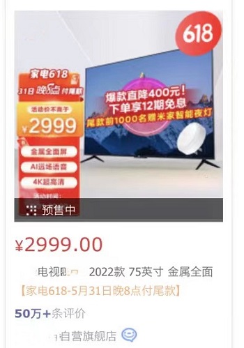 75寸彩電低至2999元 數據公司預測今年618電視價格戰(zhàn)最猛