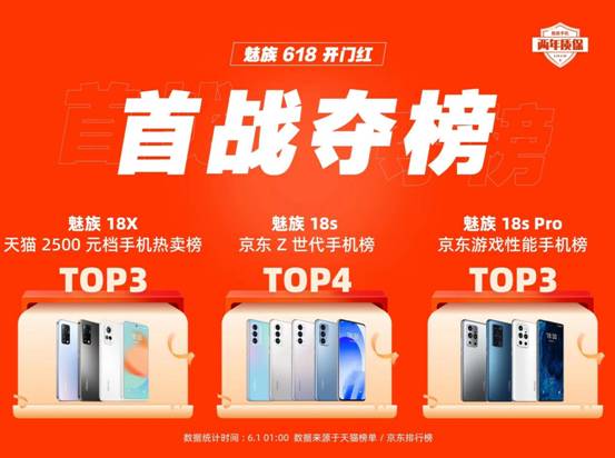 家電消費網6月1日訊 昨天晚上8點,今年618 大促活動在各大電商平臺正式開啟。在短短四小時的首日促銷活動中,魅族多款產品便拿下多平臺優(yōu)異戰(zhàn)績。其中,魅族18X 斬獲天貓 2500 元價位段熱賣榜 TOP3;魅族 18s 榮登京東 Z 世代手機榜 TOP4;魅族 18s Pro 奪得京東游戲性能手機榜 TOP3。