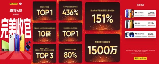 另外,真我realme官方商城手機銷量同比去年增長151%,直播間累計觀看突破1500萬。