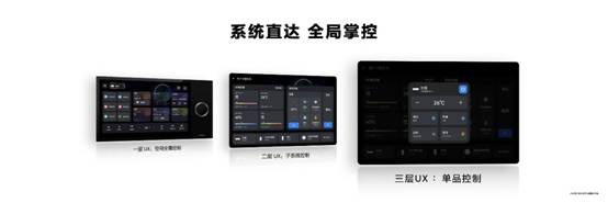 在交互距離方面,此次新添加的桌面中控屏,延續墻面中控屏的經典設計,結合桌面機身,完成了從墻面到桌面的距離進化,靈活擺放,可墻可桌,真正實現一空間一屏。同時,搭載了HarmonyOS的中控屏UX迎來重大升級,打造出獨特的分層交互邏輯。一層為空間交互界面,首頁的卡片可實現生活空間選擇、場景觸達、子系統入口和單品控制的分類收納,空間全量掌控;二層為系統交互界面,針對子系統能力進行核心信息顯示、重點功能快控的有效分類,方便用戶按照意圖高效篩選內容;三層為設備精細控制界面,用戶可實現對設備進行參數、模式、信息可視的精細控制。