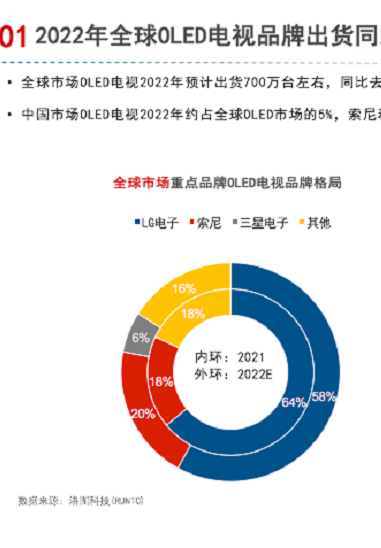 導讀:  家電消費網10月25日訊 昨天,行業機構奧維睿沃數據顯示,今年前8個月中國市場OLED電視零售出貨量僅有14 2萬臺,同比去年下降,市場占比僅為0 6%。而數據公司洛圖科技更是預測,今年全球OLED電視預計出貨7