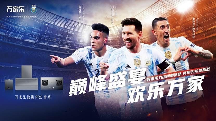 世界杯比賽期間,萬家樂將在線上線下開展“巔峰盛宴,歡樂萬家”主題營銷活動,不僅推出明星燃熱產品和廚衛套系鉅惠活動,還有阿根廷國足官方定制禮品、世界杯周邊等驚喜好禮回饋用戶。(石堅)