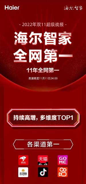海爾智家成2022年雙11最大贏家