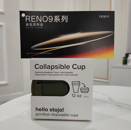 家電消費網11月17日訊 今天,OPPO向媒體派送了OPPO Reno9系列新品手機邀請函——一張寫有“雙芯人像,迎光而拍 Reno9系列新品發布會 2022.11.24 14:30”字樣的邀請函和一個折疊水杯。