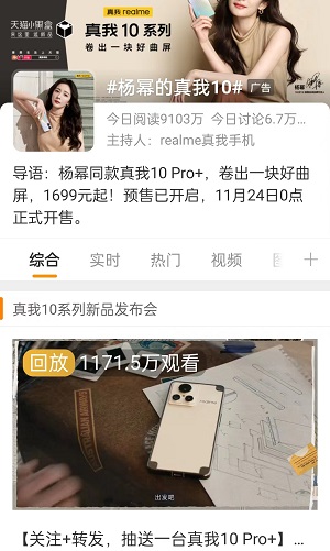 產(chǎn)品觀察:真我10系列新品手機(jī)發(fā)布 緣何斬獲1171.5萬(wàn)次觀看沖上熱搜?