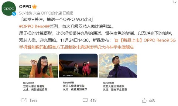家電消費網11月21日訊 今天,OPPO在官微上透露,OPPO Reno9系列首次升級雙芯人像計算引擎。