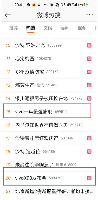 vivo X90新品發布 兩條相關新聞沖上熱搜