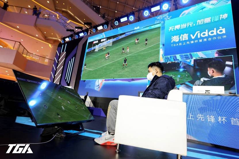 而除了世界杯主賽場,Vidda在其他賽場也沒有閑著。熬夜看球的時候,中場休息開一把游戲,是很多年輕人世界杯期間的生活方式。所以12月9-10日,Vidda忙里偷閑突然出現在杭州電競中心,不光派出兩支強隊參展,還以首席合作伙伴的身份贊助了TGA2022年云上先鋒杯。