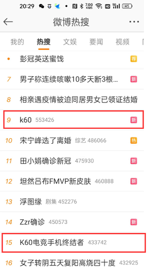 “K60”、“K60電競(jìng)手機(jī)終結(jié)者”沖上熱搜 網(wǎng)友:電競(jìng)旗艦終結(jié)者