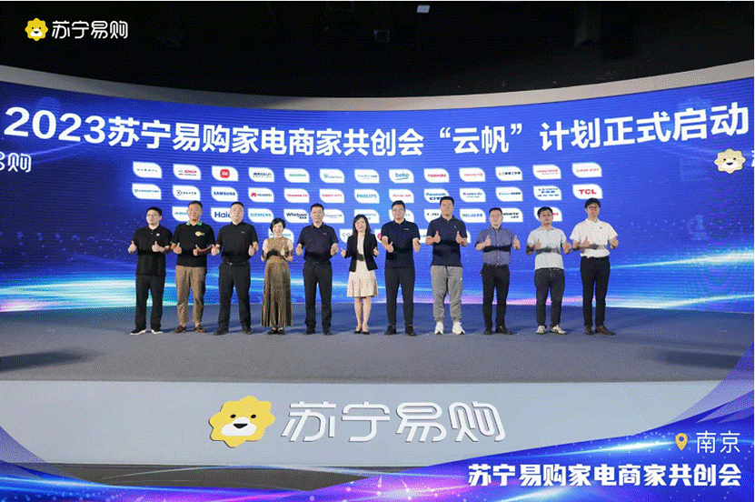 雙重利好下,7月25日,蘇寧易購召開了“向新而行,聚力共贏”2023年家電商家共創會。包括海爾、美的、海信等上百個家電頭部品牌、商家齊聚南京,共商下半年的營銷計劃,共為家電消費市場的復蘇出謀劃策。