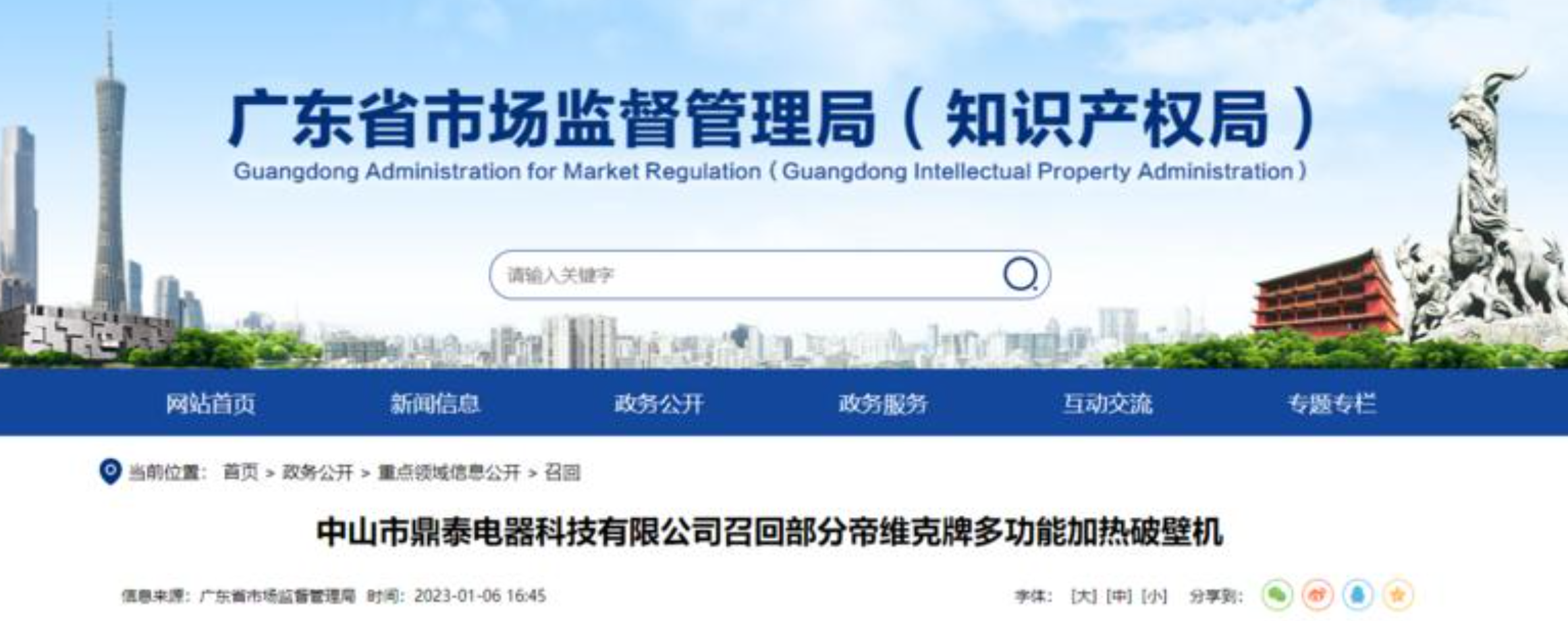 導讀: 家電消費網1月11日訊 昨天,廣東省市場監督管理局網站發布消息稱,廣東中山市鼎泰電器科技有限公司主動向廣東省市場監督管理局報告了召回計劃,自即日起,召回2021年11月9日至2021年11月10日期間制造的部分