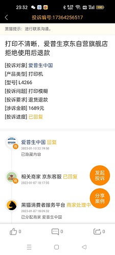 但愛普生京東自營旗艦店表示,由于已經使用,無法退款。現在要求退貨退款。
