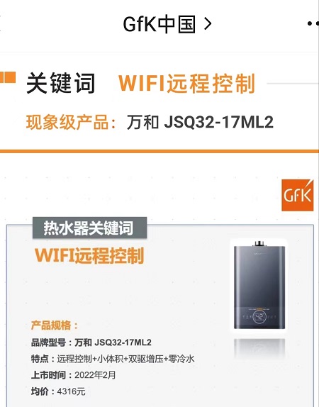 萬和JSQ32-17ML2入選GFK2022年熱水器十大現(xiàn)象級(jí)產(chǎn)品