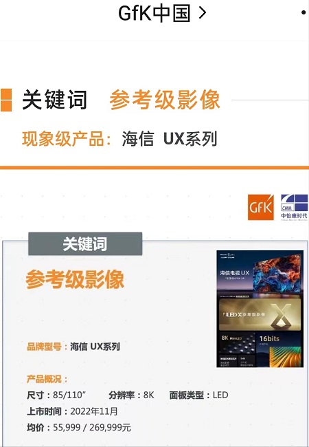 海信UX系列入選GfK2022年彩電十大現象級產品
