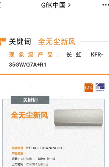 產(chǎn)業(yè)觀察:長虹全無塵新風(fēng)空調(diào)緣何上榜GFK現(xiàn)象級空調(diào)名單?